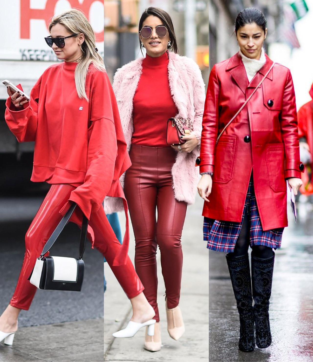 Warna berani seperti merah tampil lebih gahar dalam rupa kulit PVC. Celana, rok, sampai luaran merah mengilap menghiasi jalanan kota New York. Bahkan paduan merah-merah terlihat lebih powerful. Sangat stand out dan membuktikan warna klasik ini tengah digilai musim ini.