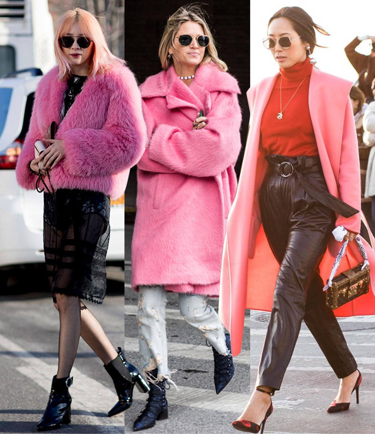 Berdekatan (bahkan bertepatan) dengan hari Valentine, pink yang memang banyak dijumpai pada runway mendominasi outerwear para bintang street style. Mulai dari blush sampai bold, pink seolah memberi kesan hangat di tengah cuaca dingin New York. Pas dengan momen hari kasih sayang.